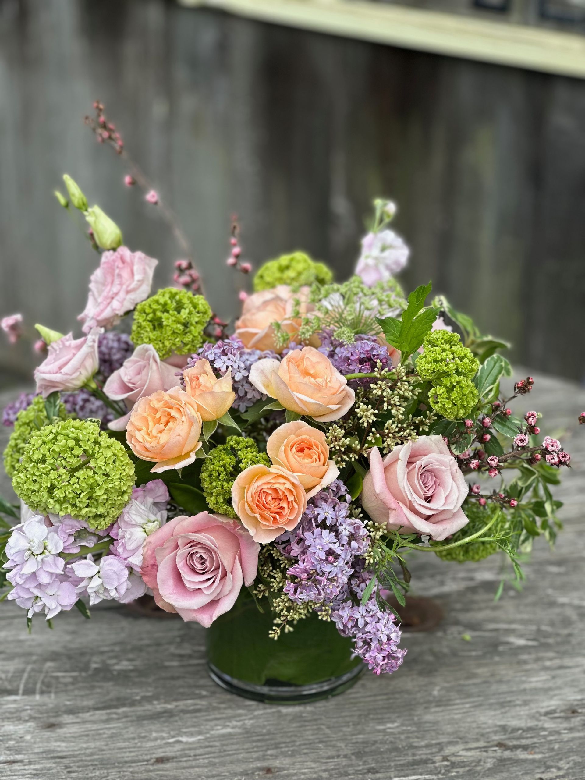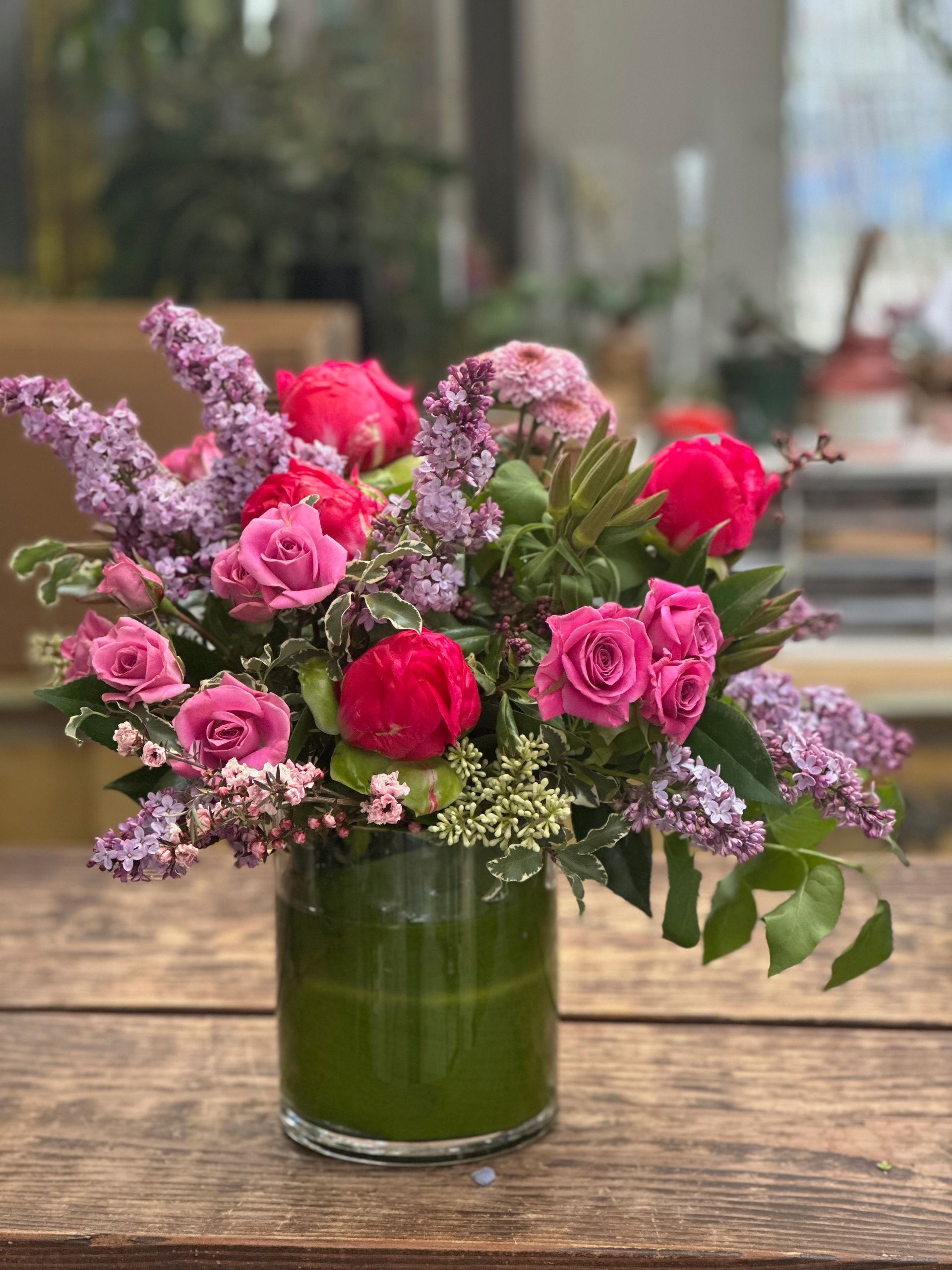 Delight her senses with this sweet smelling pretty pastel collection of roses, lilic, HMB local ranunculus, and more! Flower varieties may vary.